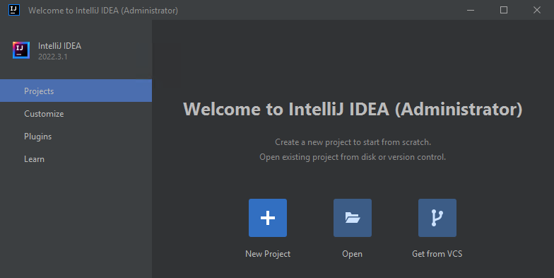 Launch IDEA and select Create New Project, or when IDEA is already opened, select File > New > Project from the menu.