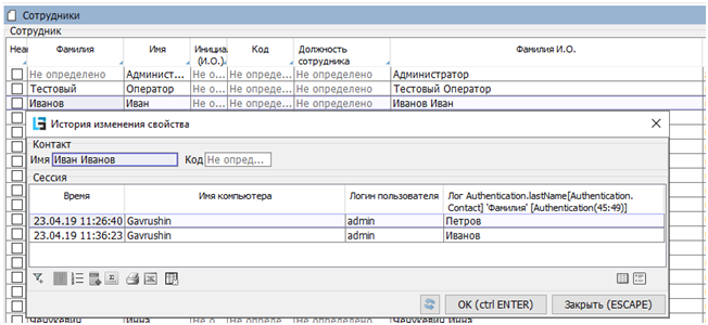 If you need to track changes to the individual values of any Properties (columns), a mechanism for user logging has been developed to allow you to do it. For example, let's say you need to record changes to an employee's last name in the Employees directory. To do this: