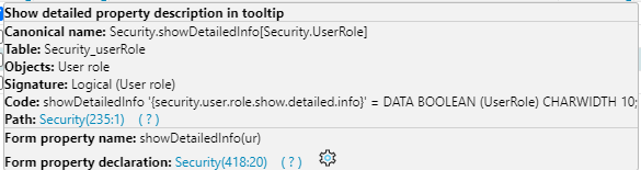 • Show detailed property description – if you hover over a property, button, field, etc., a description will be displayed in a popup window.