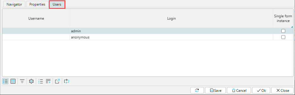 • Single form instance - when selecting a form already open on the desktop in the navigator, the user will go to it, no additional window will be opened. If there is a need to open several windows with this form, it is necessary to hold the Ctrl key when calling the form. This restriction can also be set for a specific user on the Users tab.