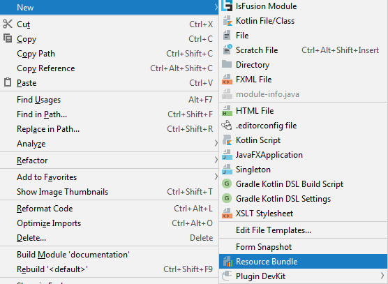 Затем создаем новый Resource Bundle, куда пропишем значения идентификаторов на разных языках: