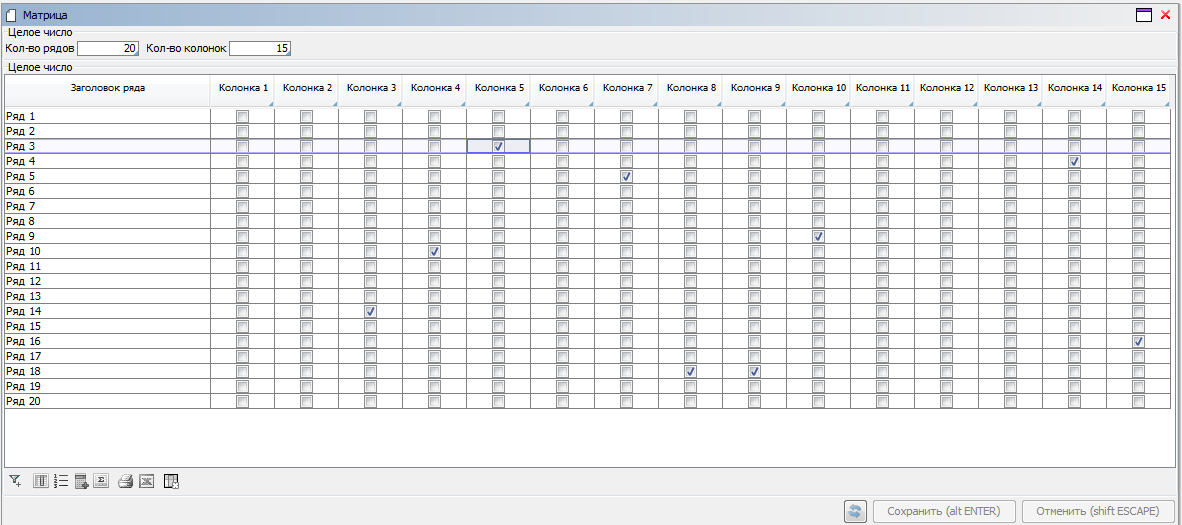Нужно построить форму, в которой будет матрица с задаваемым количеством рядов и колонок. Пользователь должен иметь возможность проставлять в каждой ячейке отметку.