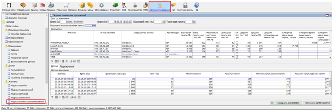 - Журнал клиентских приложений содержит информацию о качестве соединения во время работы с сервером приложений за определенный период времени (рис. 4.).