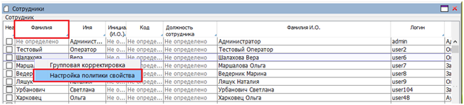Фамилия, по правой клавише мыши вызываем менюНастройка политики свойств(рис. 6.);
