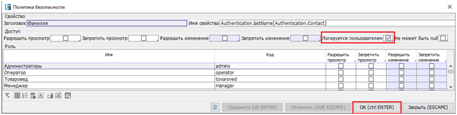 Если необходимо отслеживать изменения отдельных значений в каких-либо Свойствах (колонках), на определенных Формах, для таких случаем разработан механизм пользовательского логирования. Например, в справочнике Сотрудники нужно протоколировать изменения фамилии сотрудника. Для этого: